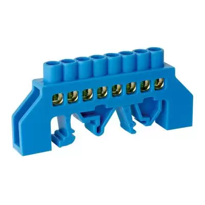 Шина нулевая TS-0609K 6х9 8 отверстий в комбинированном DIN-изоляторе "стойка" синяя ЭНЕРГИЯ